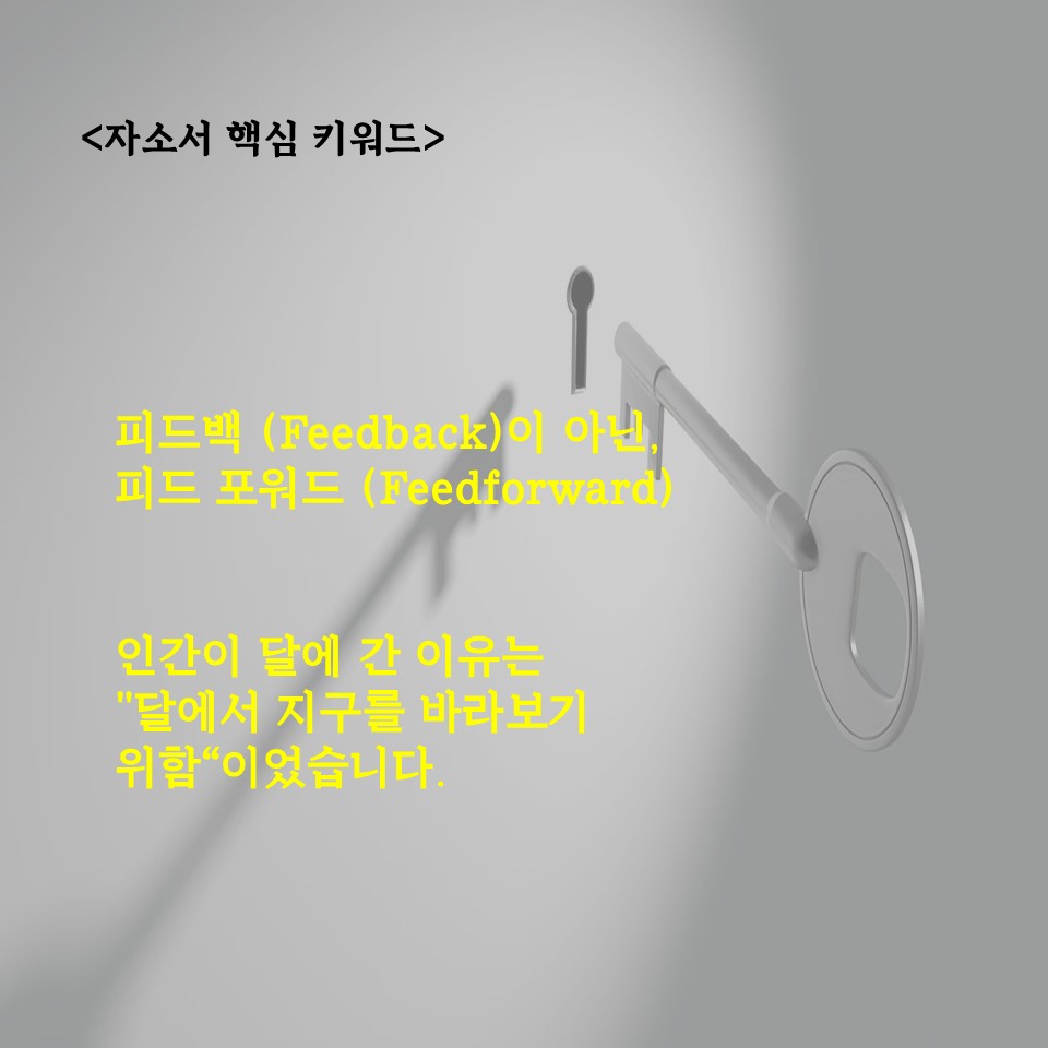 인간이 달에 간 이유는 무엇일까요? 그 이유는 "달에서 지구를 바라보기 위함"이었다고 합니다. 자신을 객관적으로 보기위해 노력하는 과정을 통해 비로소 자신을 알 수 있고, 발전을 도모할 수 있습니다. 스스로 답을 찾다 보면 문제의 객관화가 힘듭니다. 객관화하기 위해서는 타인의 시선으로 문제를 바라보아야 합니다. 그러면 답이 나타납니다. 해결책은 이미 자신에게 있었던 것입니다.